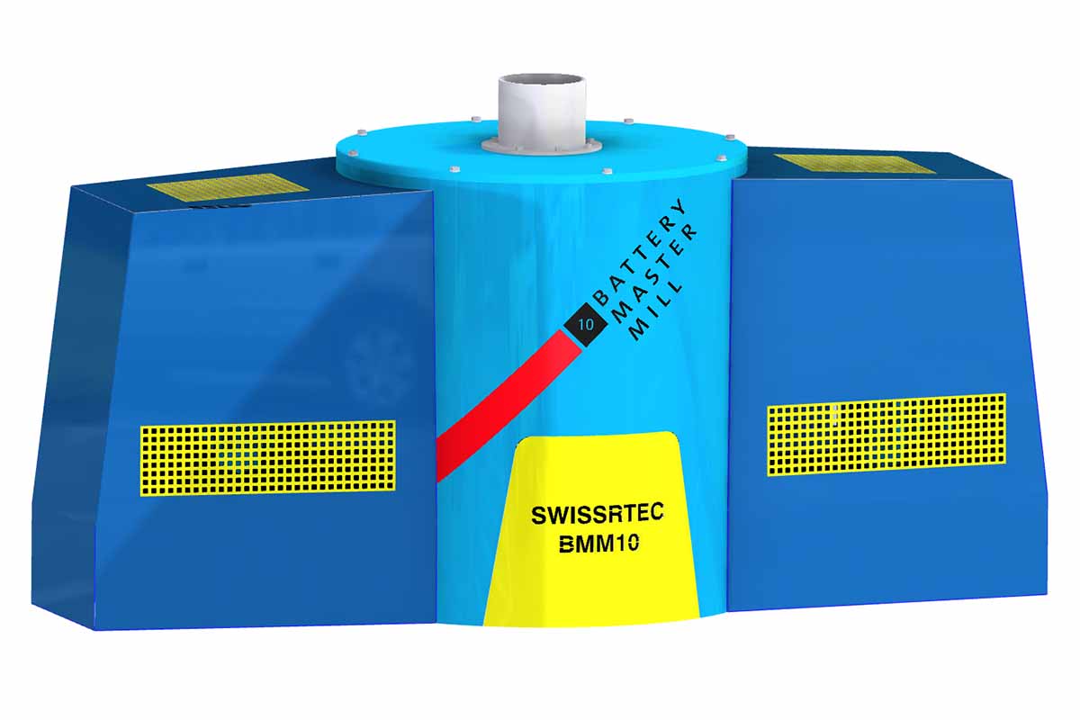 Recycling technology company swissRTec has developed the Battery Master Mill to handle anode and cathode material from lithium-ion batteries.