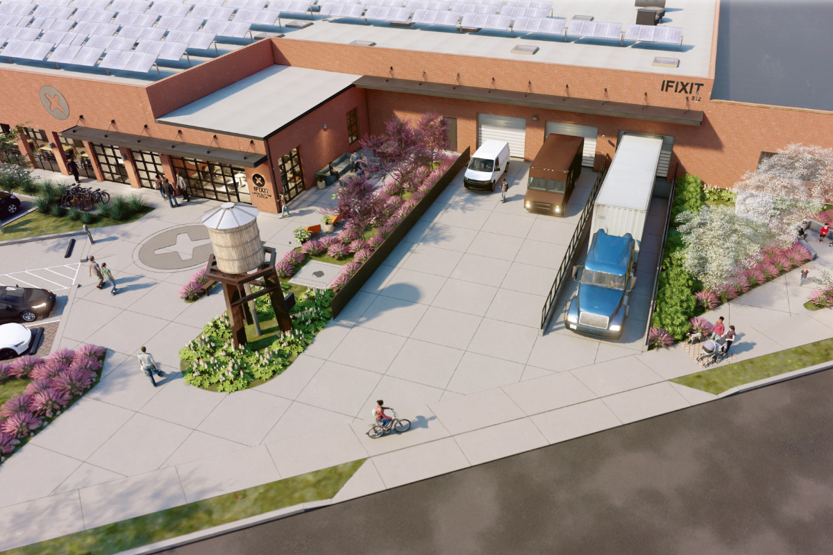 Additionally, iFixit is investing in a rainwater collection system, complete with a water tower.