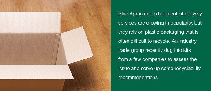In meal kits, ingredients for entire meals are packaged together and delivered to consumers’ doorsteps, allowing busy people to enjoy tasty and healthful home-cooked meals without the hassle of recipe planning or trips to the store. But at the same time, meal kit services are bringing increasing volumes of non-recyclable or hard-to-recycle plastics into households. And in some instances, the meal kit companies are implying recyclability without understanding the realities of material processing and markets.