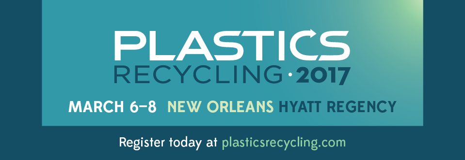Plastics Recycling 2017 is set for March 6-8 at the Hyatt Regency New Orleans. The 2016 show drew 1,650 attendees from 40 countries, and the sold-out exhibit hall featured 200 industry businesses and groups. Head to plasticsrecycling.com to register and get all the latest info.