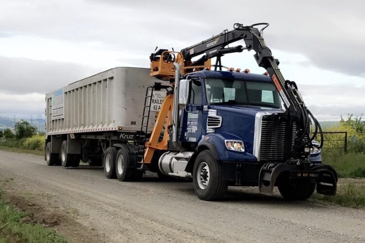 Revolution uses custom-designed semi-trucks that have a grapple on the front and an open trailer. The driver can use the grapple arm and claw to pick up the plastic, shake the dirt and debris out of it, and place it into the trailer. The company has 80 of those trucks in its fleet, some of which are used in its plastics collection efforts in Arkansas and Texas.