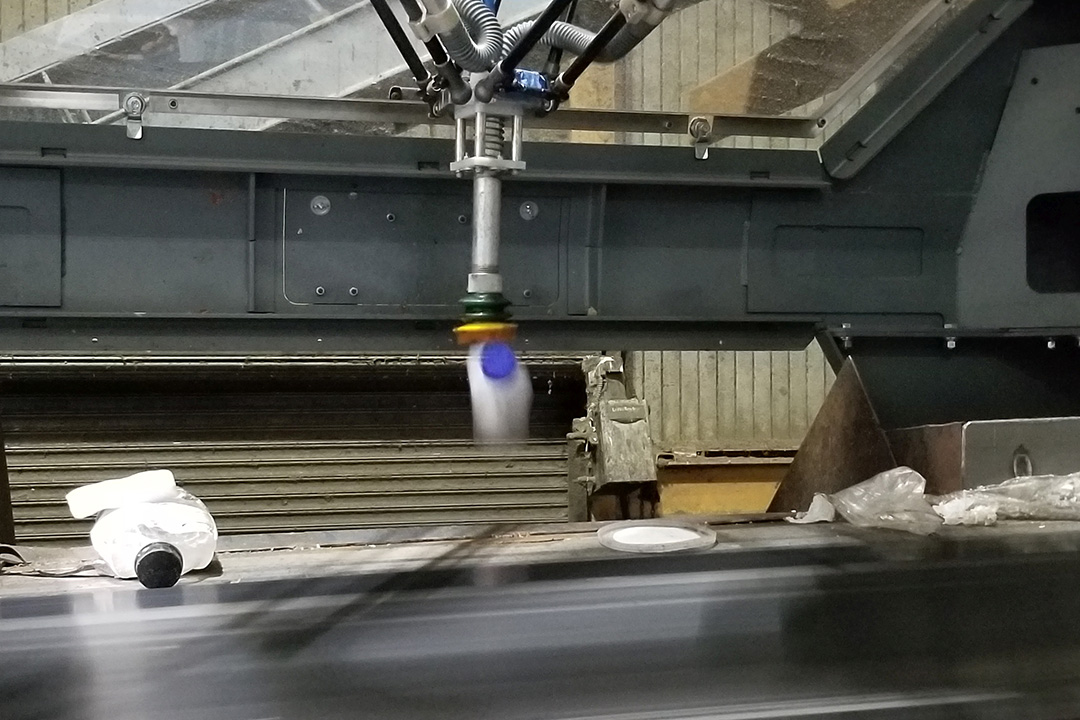 - Robot No. 4: This unit is positively sorting out black plastics that the optical sorters couldn’t identify. The black plastics go into mixed-plastic bales.