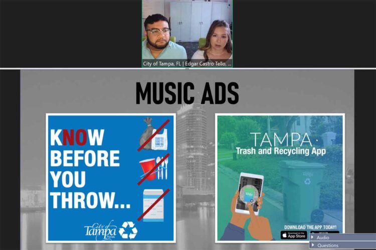 Shelby Lewis, recycling coordinator for the city of Tampa, Fla. and Edgar Castro Tello, recycling specialist at the city, discussed their work advertising through online streaming services. It was a strategy that 0% of the webinar listeners indicated they employed.