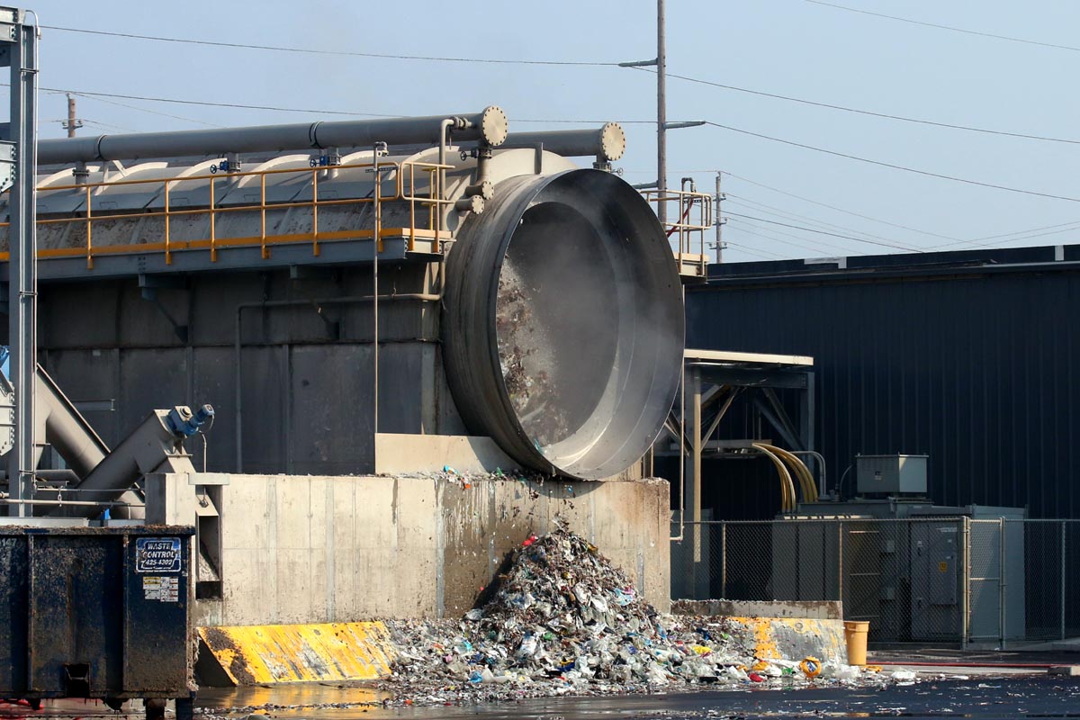 Contamination, including a lot of rigid and film plastic, falling from NORPAC’s new drum pulper, which recycles OCC and mixed paper.
