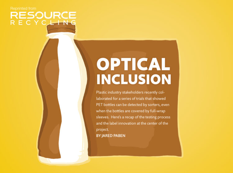 Some full-wrap shrink-sleeve labels can confuse optical sorters and degrade recycled resins, which is bad news for PET plastic reclaimers. Yet the labeling format is anything but a waning trend.