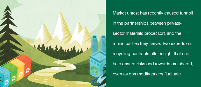 Developing recycling PPPs that understand true processing costs and are responsive to both “down” markets and “up” markets will help to mitigate the unequal allocation of risks and rewards over time.