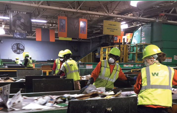 The Waste Management MRF in Germantown, Wis. processes about 850 tons per day of single-stream material from households and businesses throughout Wisconsin (except the westernmost counties) and portions of Michigan’s Upper Peninsula. Material arrives on trucks owned by Waste Management, municipalities and third-party collectors.