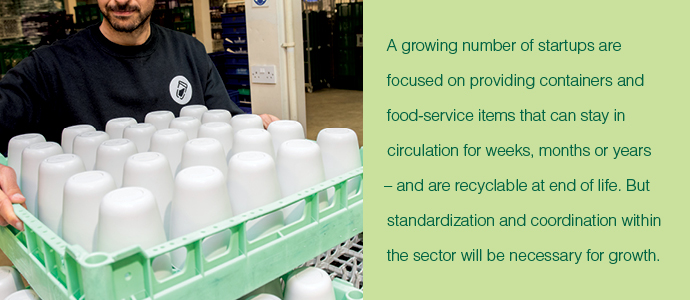 Take U.K.-based CupClub, for instance, which describes itself as a “cups-as-a-service” startup that allows consumers to “rent” reusable cups for both hot and cold drinks. After finishing their drink, consumers drop off the cups at a designated collection point, and the cups are designed to be used 132 times before they are recycled. The company claims its service reduces use of single-use plastic packaging by up to 47%.