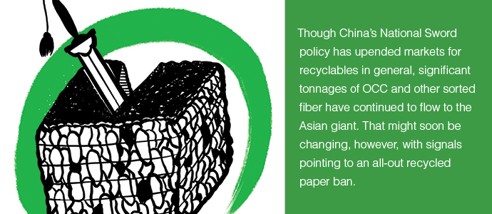 Recent actions by the Chinese government indicate the country will likely ban imports of old corrugated containers (OCC) and almost all other fiber grades in 2021.