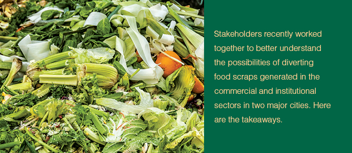 In working through the landscape assessments, the RRS team, NRDC representatives and local city officials identified key areas of focus for developing successful food diversion programs for commercial and institutional entities. Further, RRS teamed with NRDC to outline financing and funding options for small-, medium- and large-scale organics processing operations.