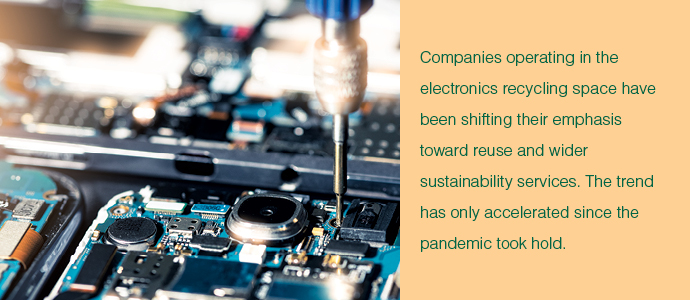 But the move toward ever lighter and smaller devices, as well as wider economic factors, have upended the value proposition in e-scrap in recent years, and companies that could target higher-value items in the stream for resale and redeployment saw opportunities for growth. As the COVID-19 pandemic set in supply chain disruptions for new electronics and processors have become more savvy in their sourcing and sales, the move away from commodity-based business has evolved further.