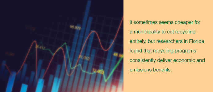 The Florida Recycling Partnership Foundation and the University of Florida recently announced the results of a study examining the environmental and business impacts of discontinued municipal recycling systems in Florida.One aim of the study was to quantify the effects of commodity market values and degrees of contamination on the recycling system. Another was to compare the impact on the greenhouse gas (GHG) emissions and costs associated with a typical Florida household’s waste management under different recycling programs.