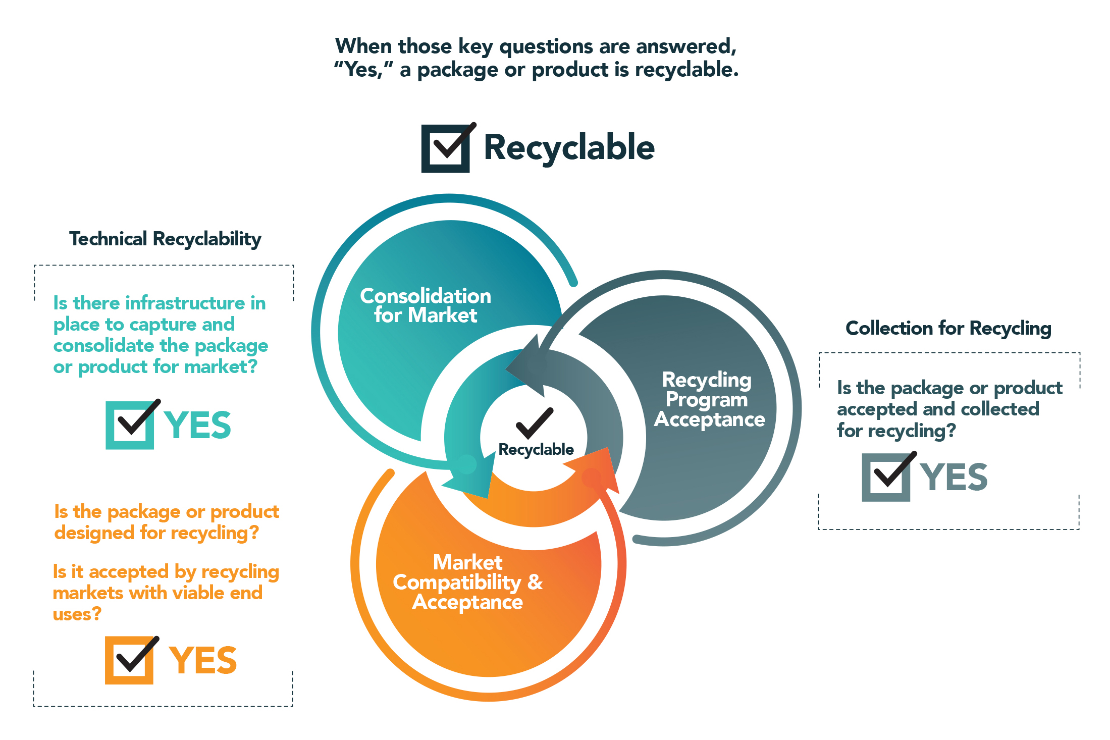 Consolidation for Market: Able to be captured by infrastructure that can consolidate them into a recycling stream that can be delivered to recycling markets