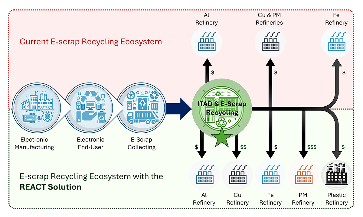 Following that phase, the team would scale up REACT into a turnkey recycling line that recyclers can adopt with minimal retrofit.