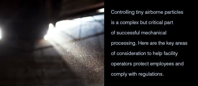 Dust control can be an expensive but necessary addition to a mechanical processing line to protect the health and safety of the employees and community. Properly designing the system upfront saves long term, improves the professional image shown to clients and regulators, and reduces risk of business interruptions later on.