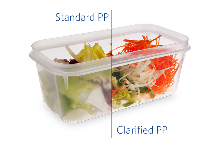 As an example, when 500 parts per million of NX 8000 is used in a 35 melt flow random copolymer PP, the haze drops to 40% (0% is clear and 100% is opaque on the scale). At 1,000 parts per million, haze is 25%, and at 4,000 parts per million, the haze is around 5%.