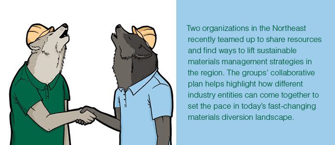 It’s not surprising then that as the waste diversion ecosystem goes through its inevitable shifts and reformulations, the management structure can get a little jumbled. At times it may seem there are too many perspectives on an issue. At others, topics of growing importance may be handled by a lone wolf when a full pack is really what’s needed. In the Northeast U.S., two organizations have recently taken action to proactively engage on issues to help recycling systems in the region thrive now and into the future. The process by which the groups have worked together can help guide other recycling entities looking to develop working relationships in the midst of larger change.