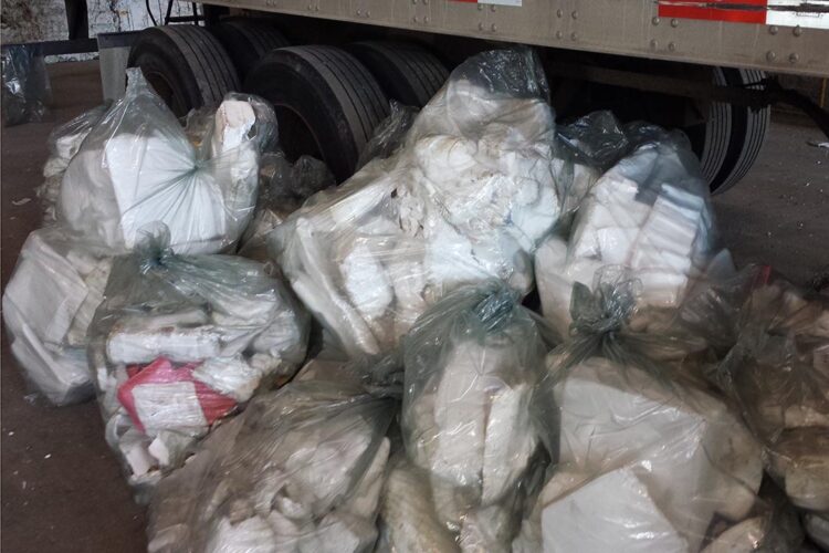As a result of the hand-sorting, staff generated 285 pounds of residue. It was made up of PP foam used to protect electronics during shipping; PE foam wrap used as packaging protection and plumbing insulation; No. 7 foams used for foodservice packaging; and a variety of films.