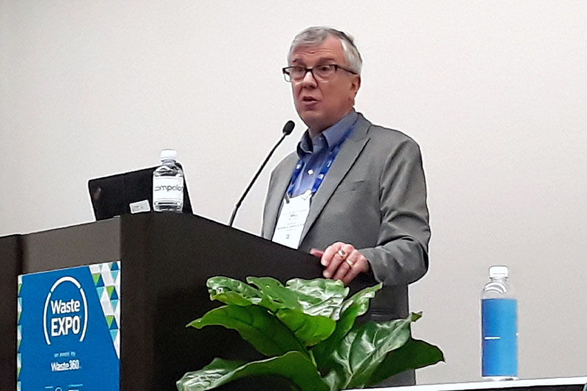 Moore presented at WasteExpo in Las Vegas in May about mixed-paper markets, covering shifts in international trade, the interplay of mixed-paper and OCC markets, efforts to reduce contamination and domestic mill investments.