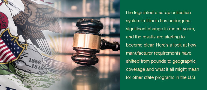 Against this backdrop, the changes implemented in the Illinois program starting in 2019 have been held up as a potential model for the wider industry. At the most basic level, the Illinois legislative changes, passed in 2017 and 2018, attempted to remove the focus on pounds collected by manufacturers and place greater emphasis on ensuring collection programs would be maintained regardless of the tonnages coming in.