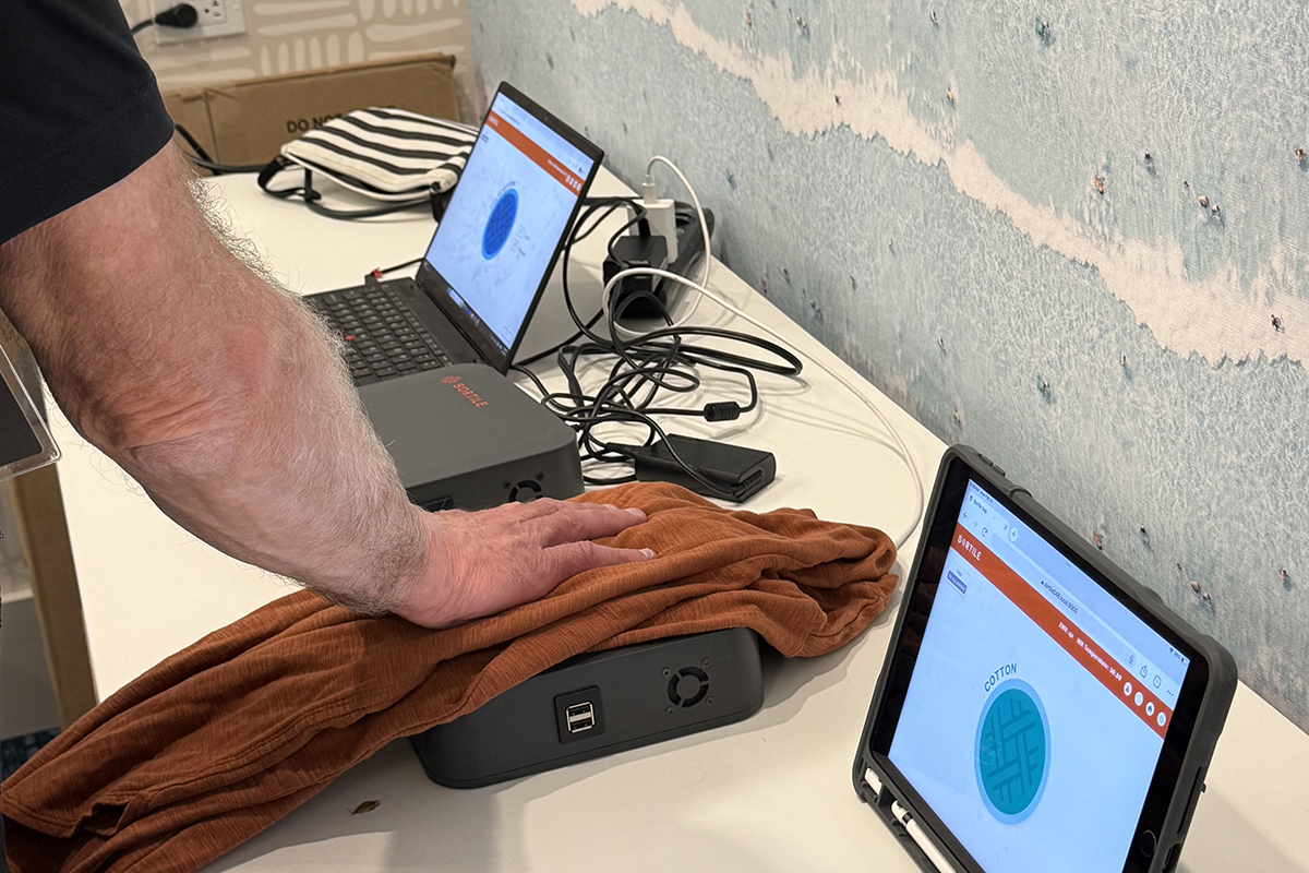 Sortile uses near-infrared (NIR) technology in a tabletop device to also determine the composition of clothing. Many customers use it for quality control at their facilities, said Gómez.