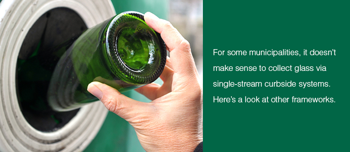 In most cases, collecting glass with single-stream recycling is a good option. However, there are alternative solutions for situations where single-stream collection isn’t the best fit. Let’s explore some other collection options for glass recycling programs, along with real-world examples of each.