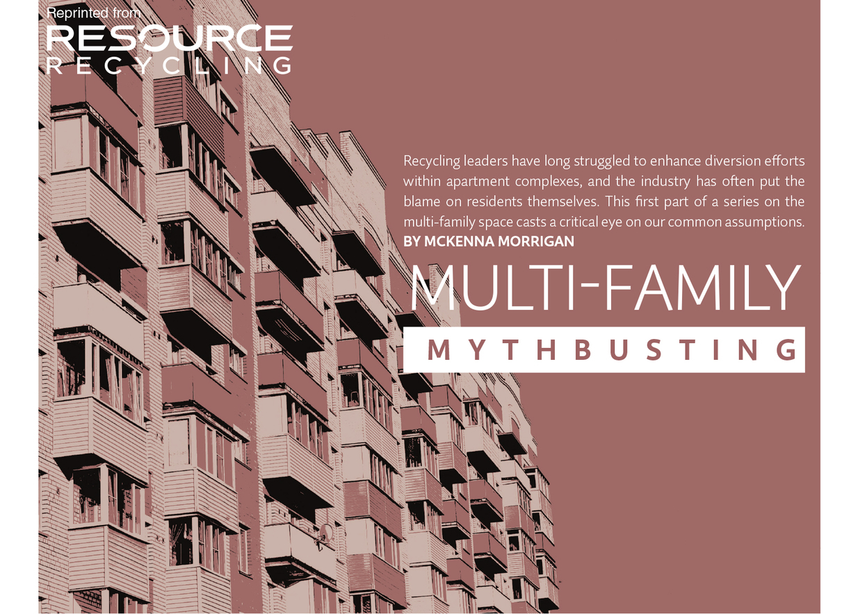 It is indisputable that multi-family recycling rates currently lag behind single-family rates in virtually every community in the country. But our commonly accepted explanations contain more myth than truth, preventing recycling programs from addressing the real barriers and drivers that affect multi-family recycling rates. The good news is that there are straightforward and affordable actions that any community can take to identify and address the real barriers, dramatically improving the quantity and quality of recyclables collected from multi-family buildings.