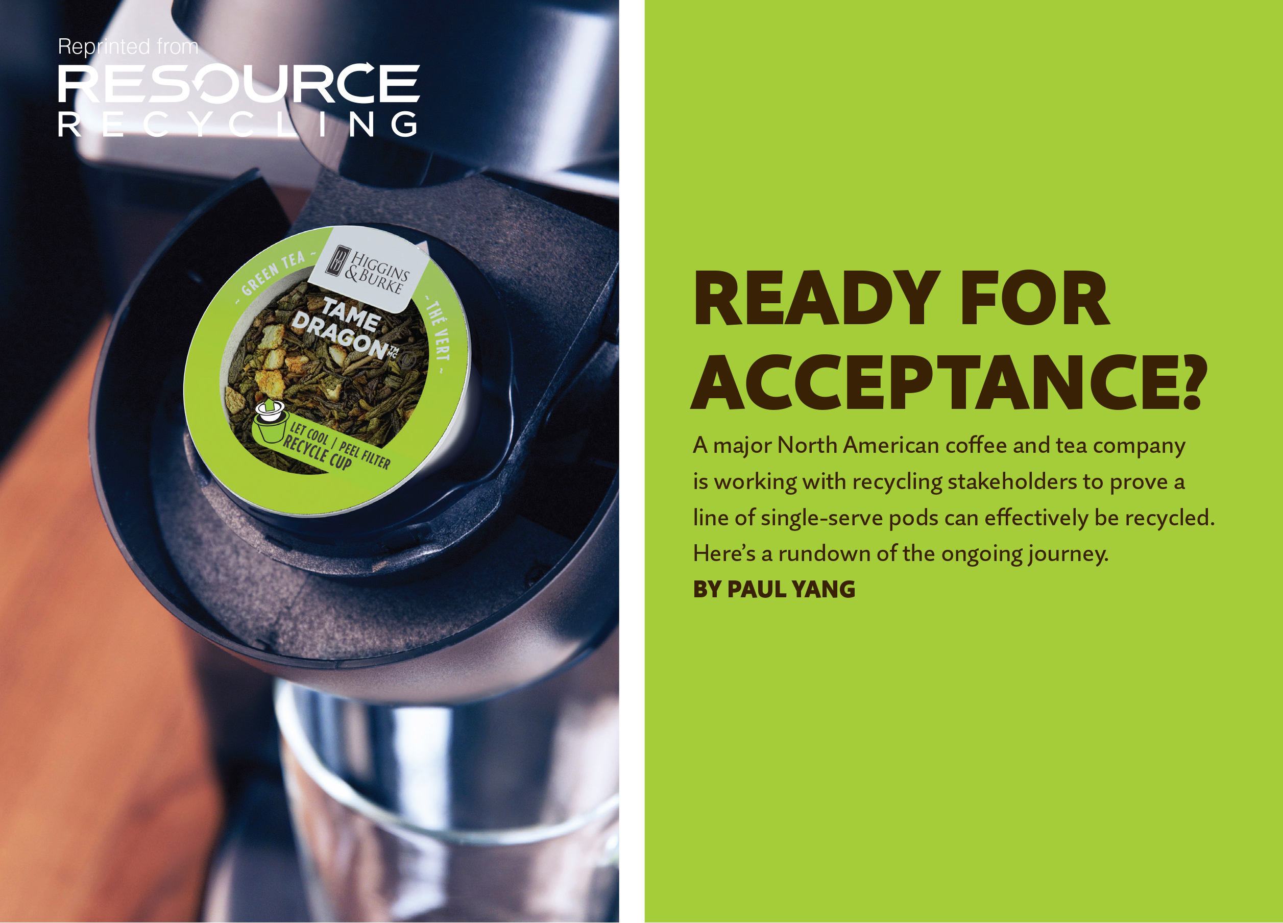 This challenge was addressed in part through efforts in Canada. In British Columbia, separated single-serve pods of all types are explicitly accepted in the majority of communities. The recent introduction of a province-wide recycling program funded and managed by producers helped shed some important light on the current lingering questions and drive new learnings for recycling newer packaging like single-serve pods.
