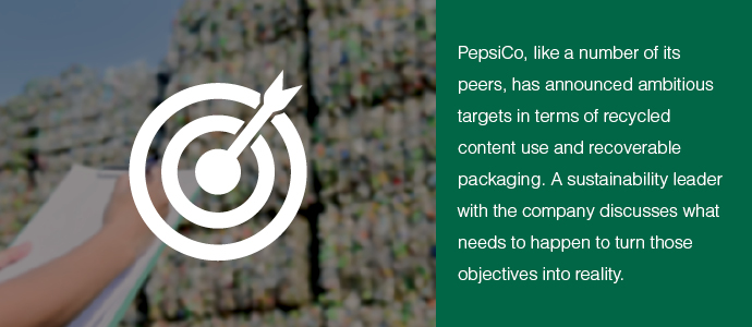And one company at the center of the action has been PepsiCo. In the fall of 2018, the food and beverage behemoth committed to hitting 25% recycled content across its portfolio of plastic packaging by 2025. It also said it would achieve 33% recycled plastic in its PET containers.