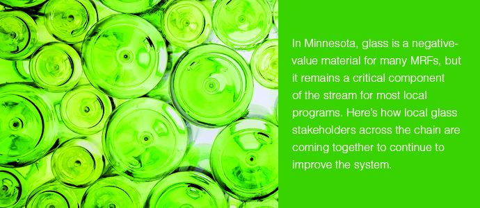 The state of Minnesota has an effective glass recycling system in place, including community collection programs, materials recovery facilities (MRFs), a secondary glass processor, and numerous end market manufacturers serving the region. It is reported the glass marketed from MRFs in Minnesota is some of the cleanest in the country, with loads having relatively low non-glass residual (NGR) rates. In general, glass-recycling stakeholders in Minnesota understand the value of recycling glass to keep it out of the costly disposal stream and are pushing forward with efforts to continue to expand glass recovery.