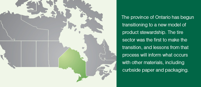 The road to a waste-free Ontario began with tires and is continuing with electronics, hazardous materials, and packaging and paper products.