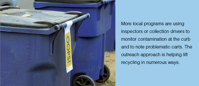 Facing ever-increasing pressure to deliver a cleaner stream to processors, cities across North America are turning to curbside inspection of residential carts. Many are seeing positive results from the efforts.
