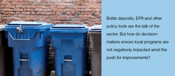 Policymakers currently have a unique opportunity to engage producers and consumers to improve recycling. At the same time, they can ensure that municipal programs are not hurt in the process.