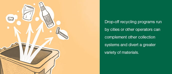 But where single-stream curbside recycling halts for different materials, drop-off collection gets a chance to shine. And in many cases, well-planned drop-off efforts can help programs offer recycling opportunities for a bigger swath of the waste stream.